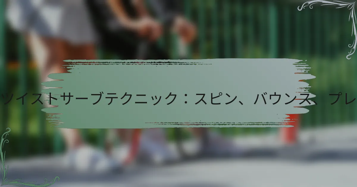 アメリカンツイストサーブのためのスピンを生成するには、特定のテクニックを使用してトップスピンまたはサイドスピンを作り出す必要があります。これにより、ボールの軌道やバウンドに大きな影響を与えることができます。これらのテクニックをマスターするには、グリップ、体の位置、ターゲットを絞ったドリルを通じての一貫した練習が必要です。