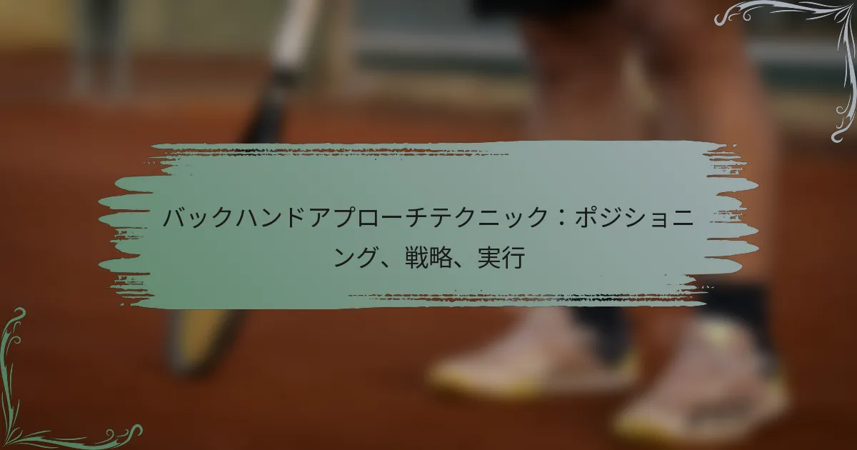 バックハンドアプローチ技術をマスターすることは、テニスにおける全体的なパフォーマンスを向上させるために不可欠です。重要な要素には、適切なポジショニング、戦略的なフットワーク、効果的な実行が含まれ、これらはすべてプレー中のエラーを最小限に抑えることに寄与します。バックハンドショットをいつ使用するかを理解し、それを自分のプレースタイルに合わせることで、コート上での効果を高めることができます。