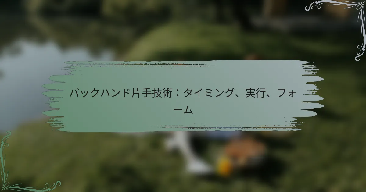 片手バックハンドを効果的に実行するには、グリップ技術、体の位置、フォロースルーを習得することが必要です。適切なタイミングとメンタルフォーカスも、試合中の一貫したパフォーマンスにとって重要です。これらの要素を理解することで、全体的なゲームを大幅に向上させることができます。