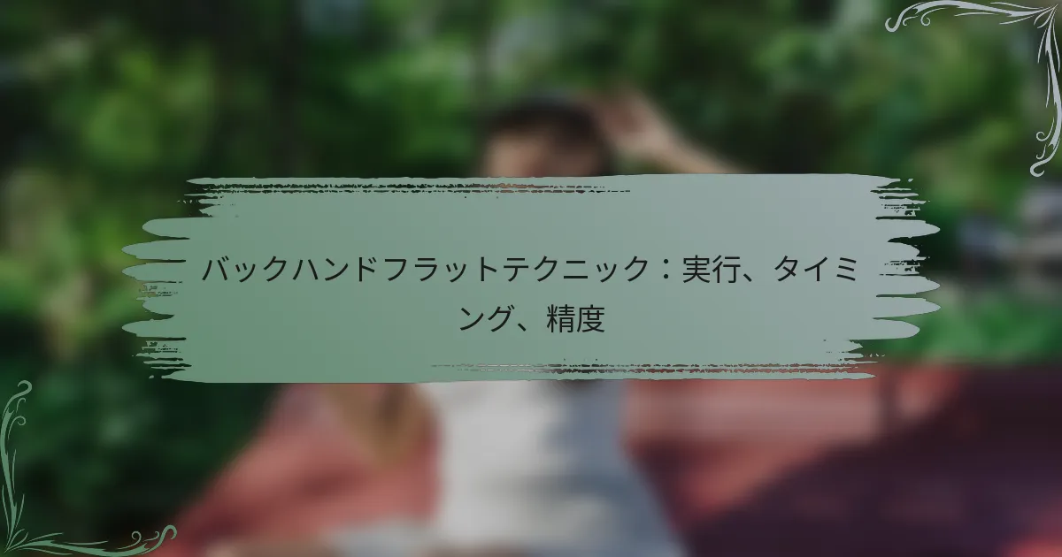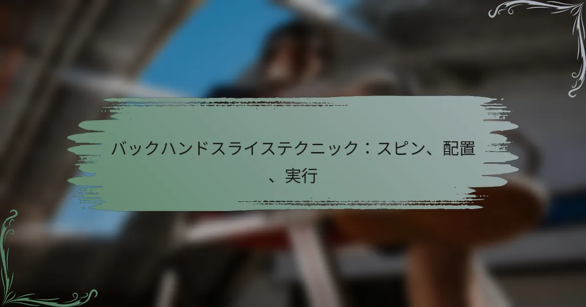バックハンドスライスを効果的に実行するには、タイミング、体のアライメント、戦略的な配置の組み合わせが必要です。これらの要素をマスターすることで、試合中のパフォーマンスと適応力を向上させることができます。