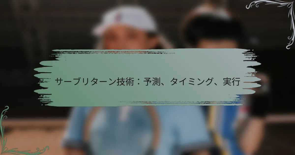 サーブリターン技術は、相手のサーブの後にリターンショットを予測、タイミング、実行することを含むラケットスポーツにおける基本的なスキルです。これらの技術を習得することで、選手のパフォーマンスや全体的なゲーム戦略に大きな影響を与えることができます。