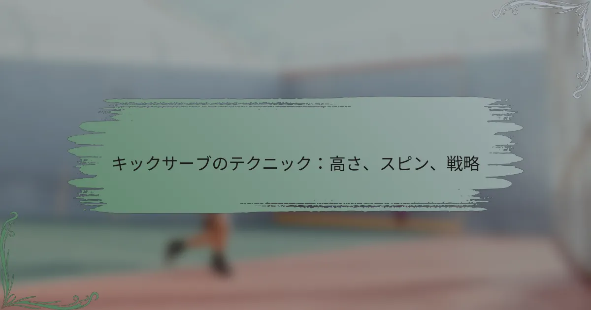 - 評価と調整:各試合の後に、サーブのバリエーションの効果を評価し、それに応じて戦略を調整します。